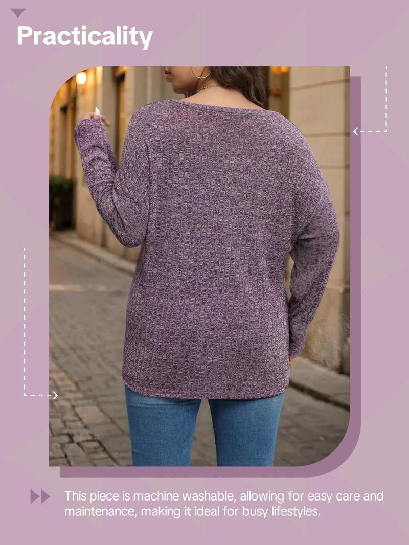 【Plus Size】 Plain Textured Drop Shoulder V Neck Knit Top, Casual Elegant Classy Chic Long Sleeve Ribbed Top for Fall & Winter, Women'S plus Clothing for Daily Wear